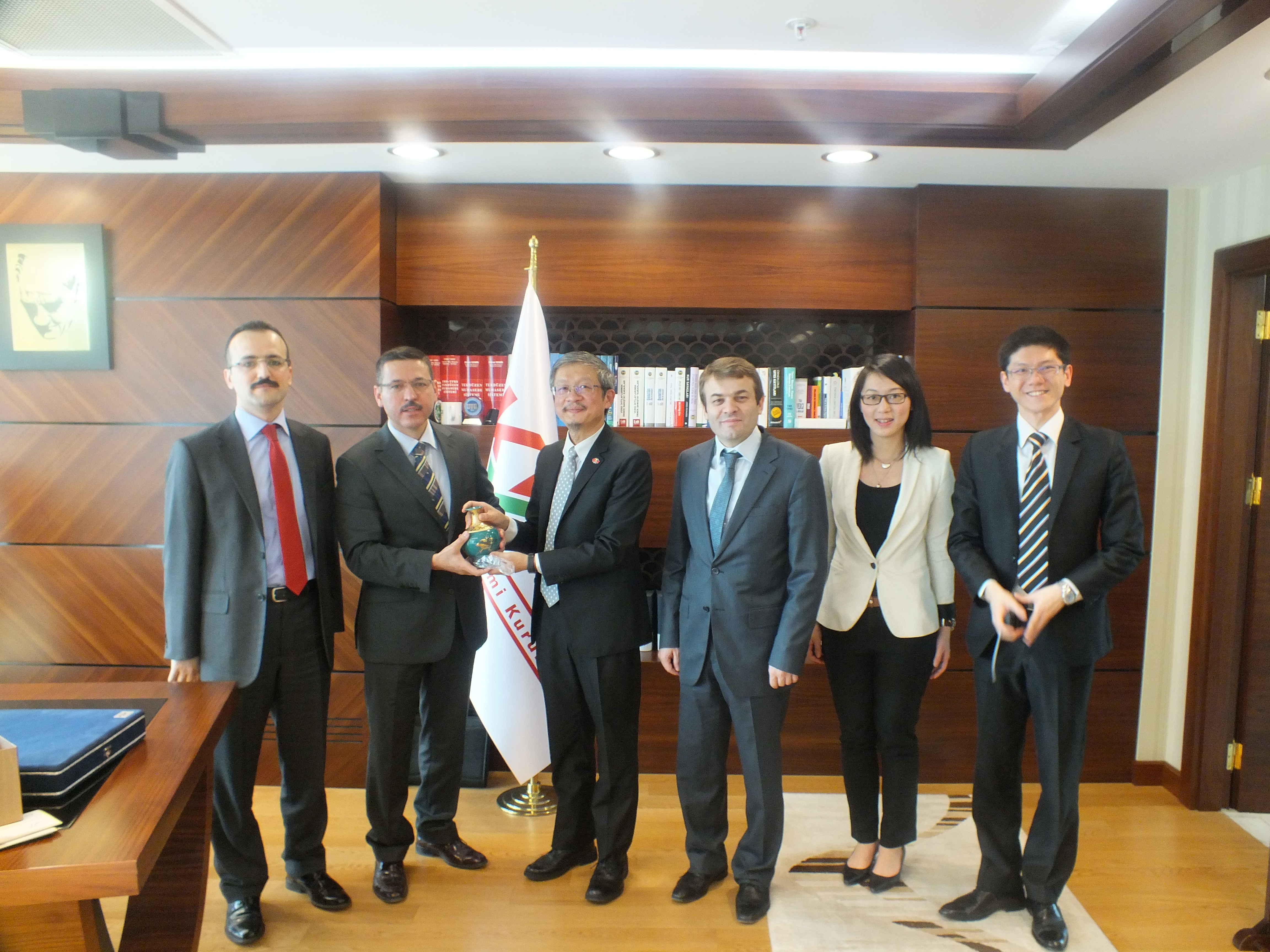 24.03.2015 tarihinde Tayvan Ankara Büyükelçisi Sayın Yaser Tai Hsiang Cheng ve beraberindeki heyet kurum başkanımız Sayın Seyit Ahmet Baş’ı makamında ziyaret etti.